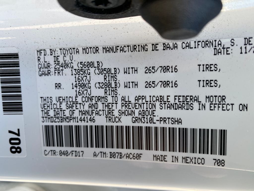 - Vehicle Name: Toyota Tacoma 4WD
