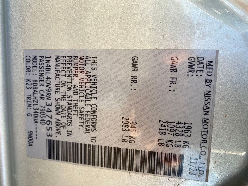 - Vehicle Name: Nissan Altima